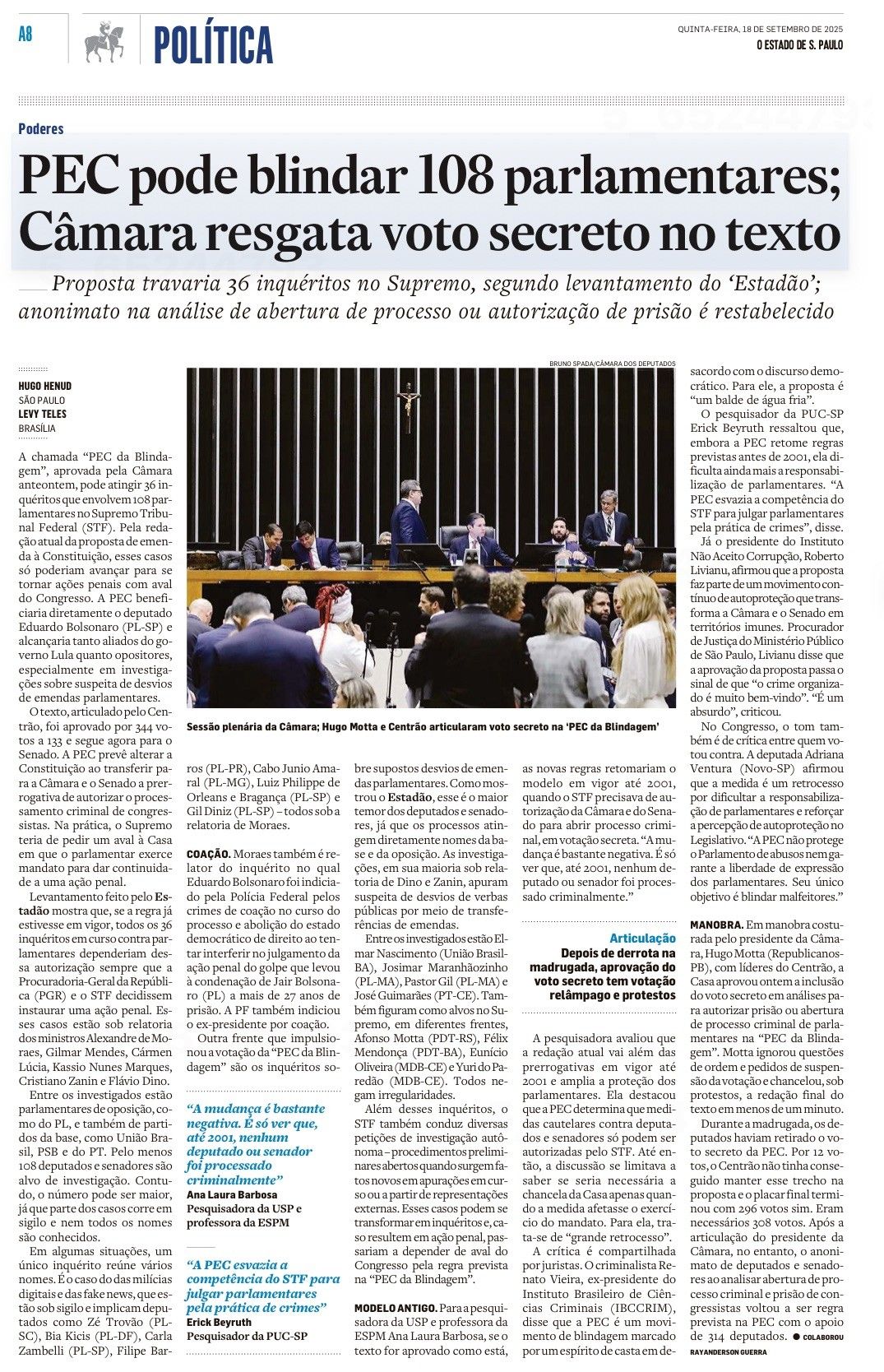 O sócio Renato Stanziola Vieira foi ouvido pelos jornais Valor Econômico e ESTADÃO a respeito da proposta de emenda constitucional que pretende redimensionar as situações de investigações que digam respeito a parlamentares, a chamada “PEC da Blindagem”.